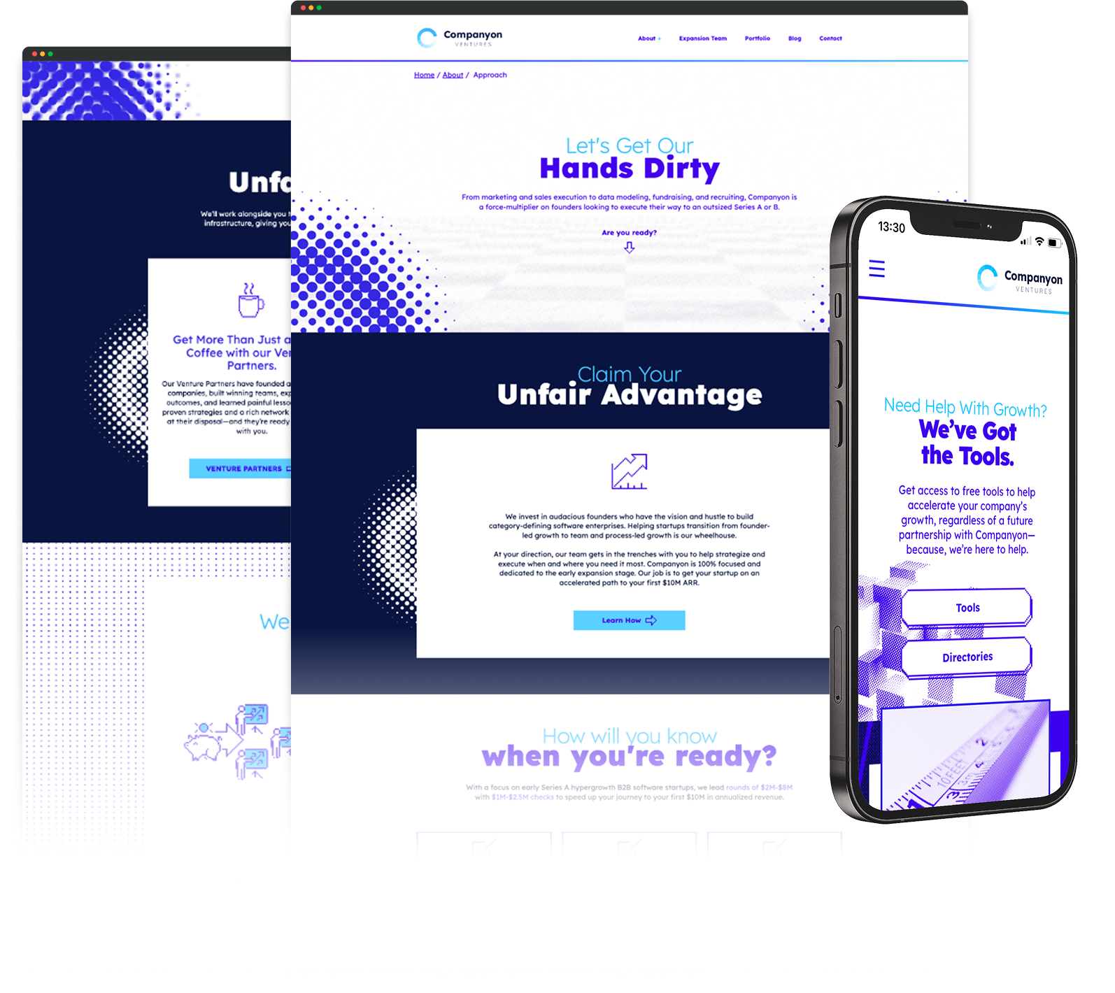 Companyon Ventures is a firm dedicated to funding the businesses of the future. They focus on investing in software startups and helping with growth, management, and financial decisions in the early expansion stage of funding. Companyon helps with marketing, sales execution, data modeling, fundraising, recruiting, and more. The brand embodies the scrappy, visionary spirit of so many early tech companies. Their website, branding, and social media was included in the refresh.