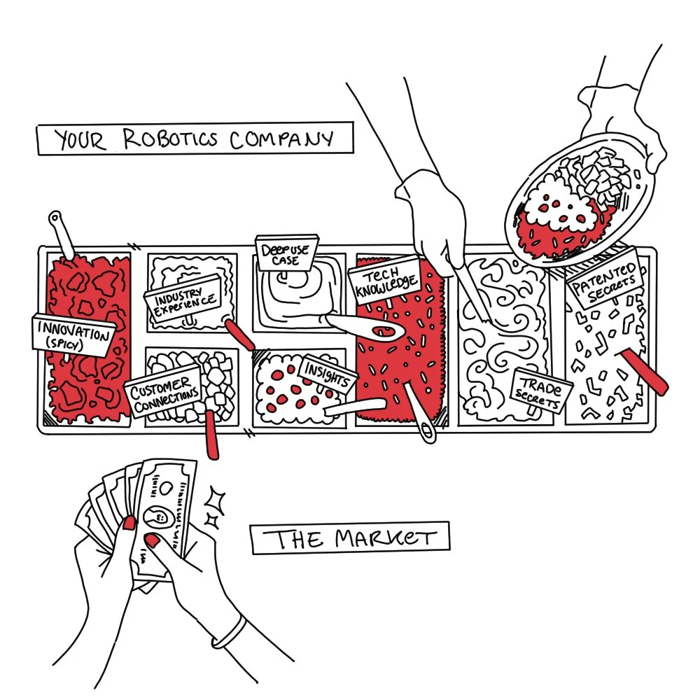 Cybernetix Ventures had a crazy idea late 2024: What if they did a playbook to guide tech startups in the world of robotics? It was such a huge, novel idea they had no idea how they wanted this to look other than they wanted it informative, funny, and laid out like a real-life paper book. This project specifically had two challenges: How could I achieve a book-like layout in a digital space, and what would illustration for this concept look like? What followed was months of collaboration between the Cybernetix team and ours. In the end, Cybernetix went with a more serious approach, but the following era of the art development remains my favorite.